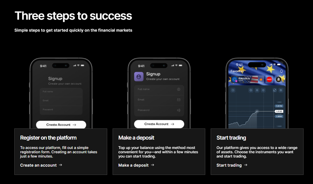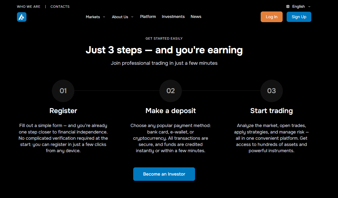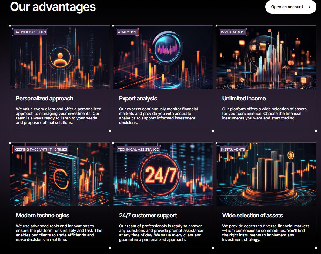 Trading Technology and Payments: The broker exclusively uses a proprietary WebTrader platform—a simple online terminal—with no support for professional platforms like MetaTrader. While the company mentions a variety of deposit and withdrawal methods (bank cards, SWIFT, online payments, and crypto wallets), the specific rules and associated fees for these financial operations are not publicly disclosed, remaining opaque until a client registers.