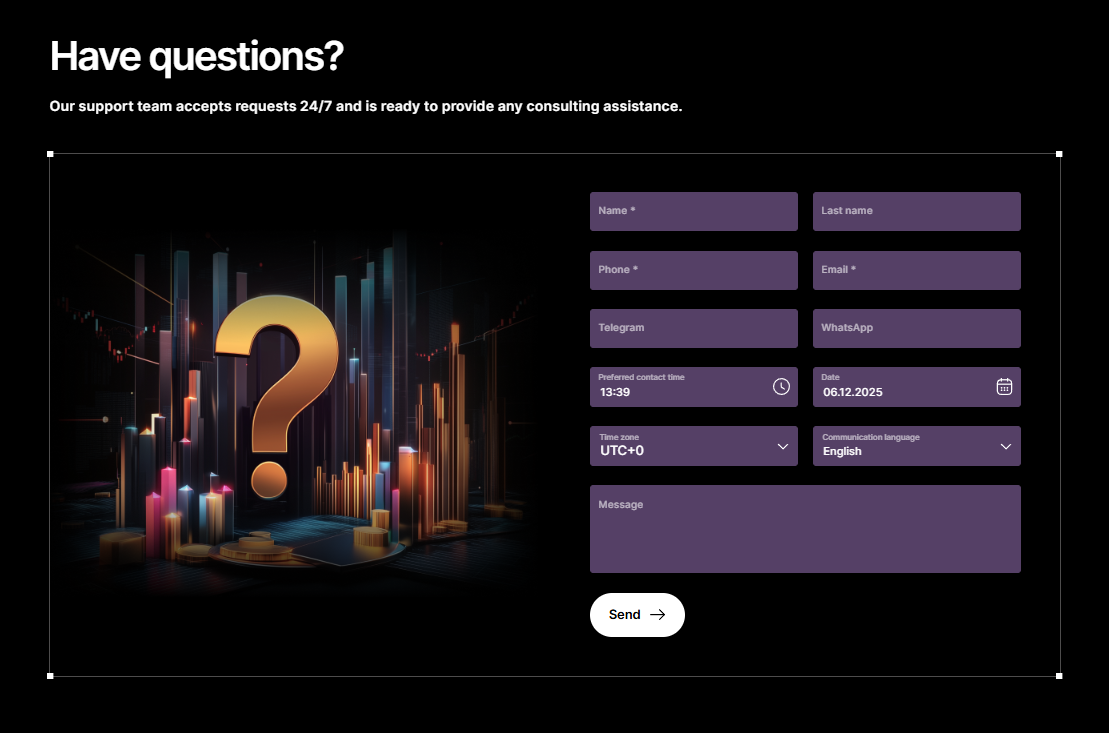 Despite this, the website vaguely implies connections to “international regulatory frameworks”—a standard tactic used by scam brokers to confuse inexperienced traders.
